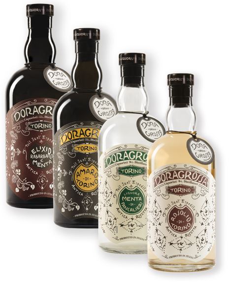 Met een passie voor goed gemaakte producten en gefascineerd door de geschiedenis van likeuren en sterke dranken zoals ze oorspronkelijk werden gemaakt, brengt Doragrossa Torino een eerbetoon aan de kennis en vaardigheden van de Piemontese Master Distillers. De likeuren zijn gemaakt op basis van traditionele recepten. Deze worden verfijnd in een zoektocht naar de meest fascinerende aroma's en smaken. Er wordt gebruikt gemaakt van de beste kruiden en specerijen, zorgvuldig geselecteerd en bewerkt volgens nauwgezette ambachtelijke processen. De range bestaat uit verschillende likeuren, een amaro en een Rhubarb-elixer.
