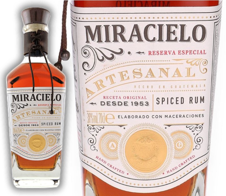 Miracielo is een spiced rum verkregen door maceratie en infusies. De meeste spiced rums worden verrijkt met tincturen, dit zijn destillaten van bijvoorbeeld kruiden en fruit, daarna wordt vaak extra suiker toegevoegd. Miracielo doet dit niet. De 3 smaakmakers in deze Artisanale Spiced Rum zijn: Vanille, rozijnen en abrikozen. Deze botanicals worden aan de rum toegevoegd op vat. Dit zijn van nature al voorkomende aroma's in rum en worden hierdoor extra benadrukt. Het resultaat is een subtiele spiced rum met tropische aroma's, die niet te zoet is.